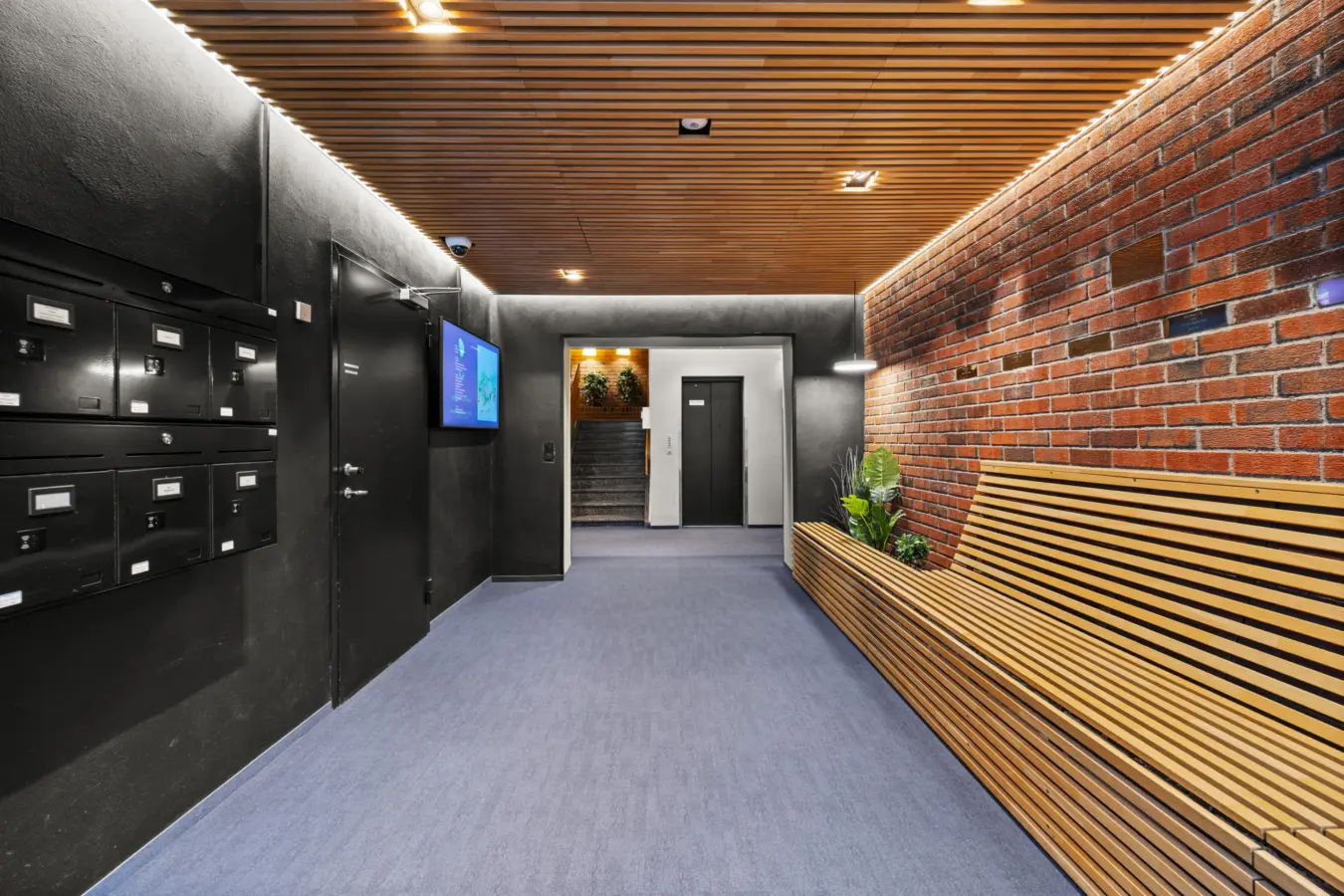 * Hver etasje har felles møterom, kjøkken og toaletter.