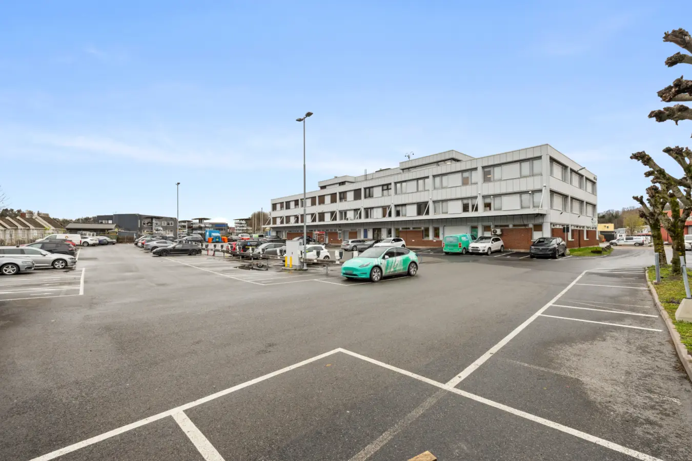 Parkeringsmuligheter på baksiden av bygget.