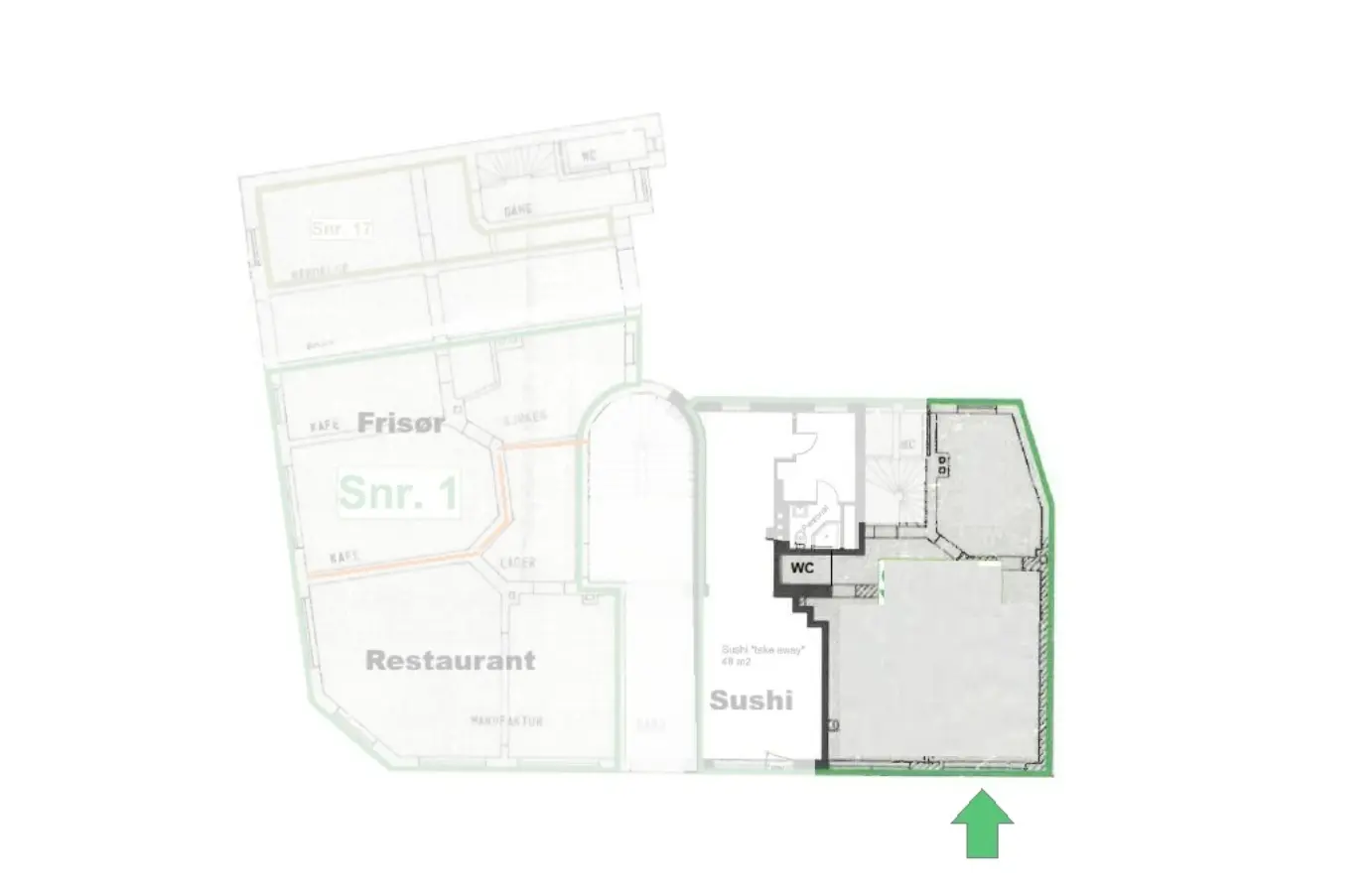 Lokalet ligger i 1. etg. og er BRA 77 kvm./BTA ca. 95 kvm.