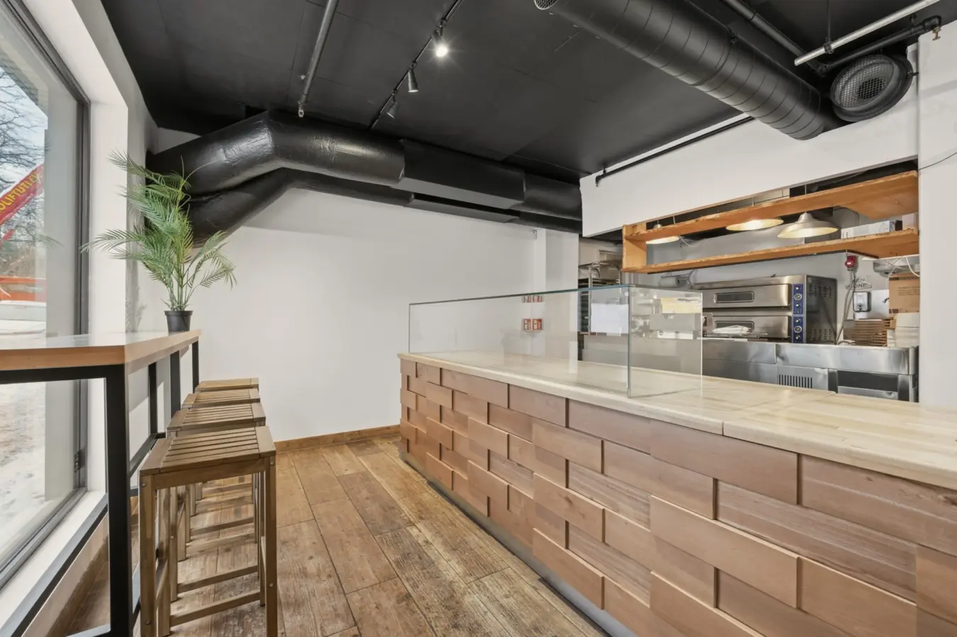 I dag er lokalet innredet med sitteplasser langs bardisk, åpent kjøkken, bakrom med personal toalett og gaderobe.