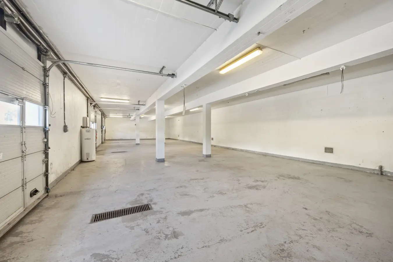 Ca. 184 kvm BTA med 2 kjøreporter. Takhøyde på ca. 3,4 meter. Portene har en bredde på ca. 2,73 meter og høyde på 3 meter. Det er vann og sluk i lokalene.