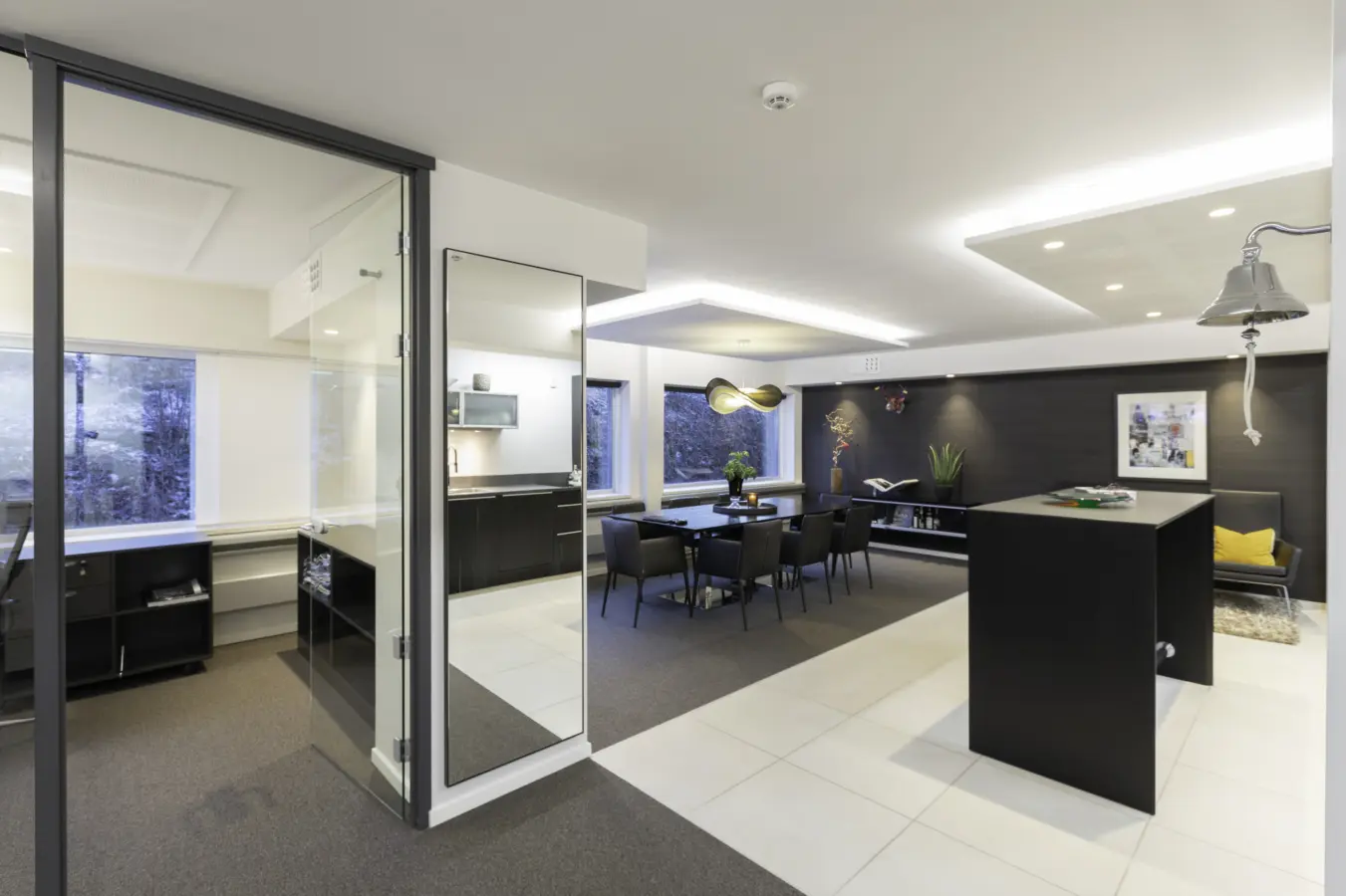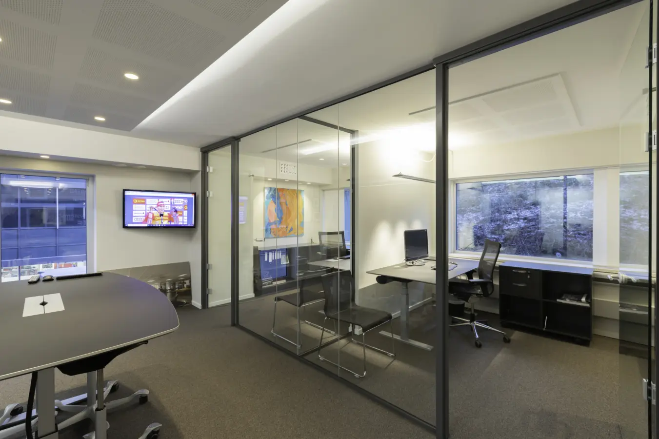 Lokalene er lyse med store vindusflater som gir godt arbeidslys.