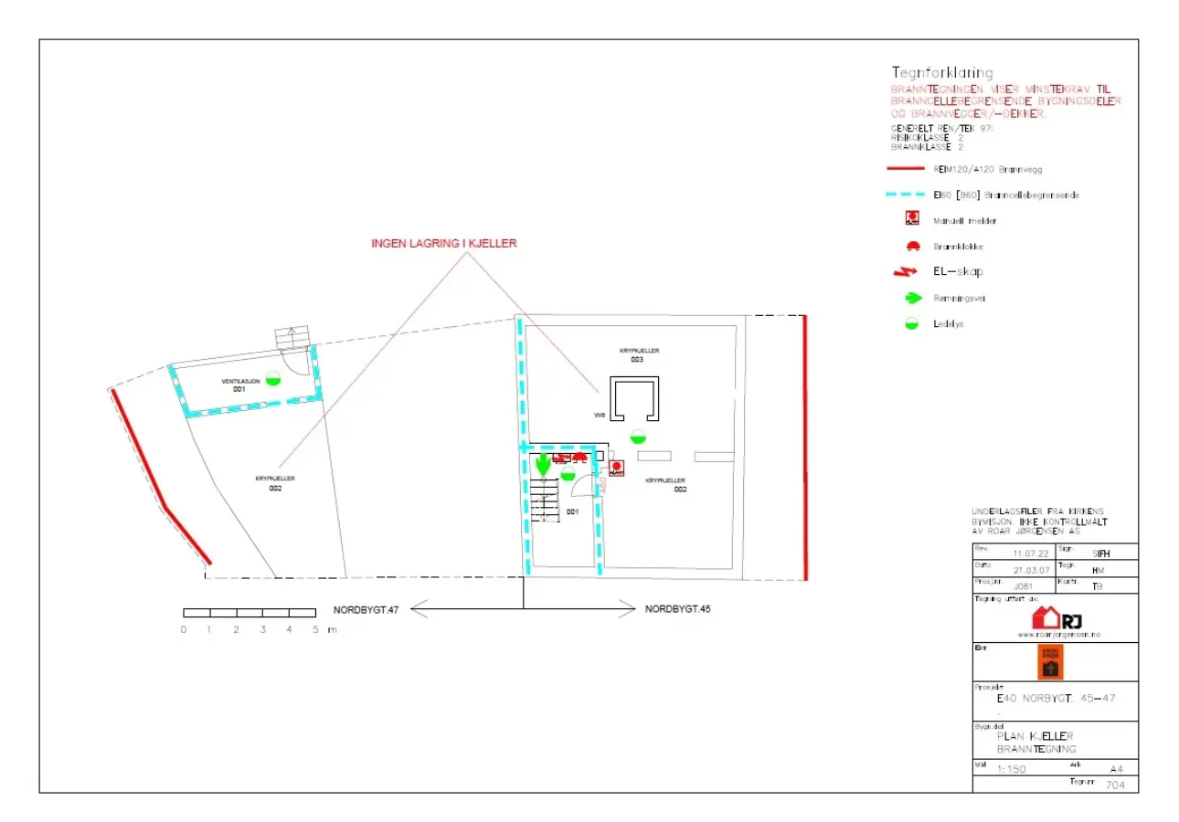 U.etg.: Ikke måleverdig areal. Lav høyde i nr. 45 og kryprom i 47.