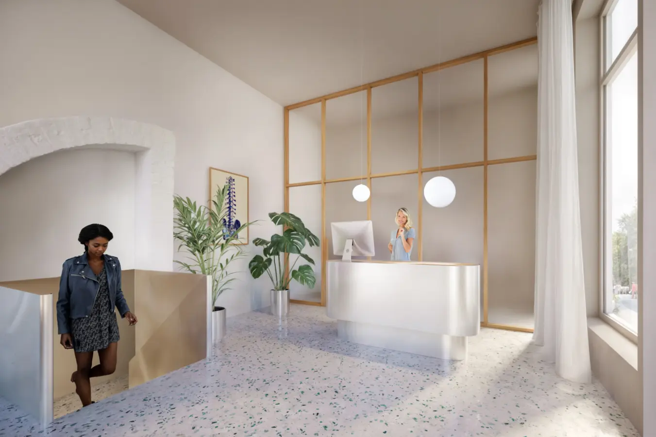 1. etg.: Forretningslokale med store vinduer og ca. 4 meters takhøyde.