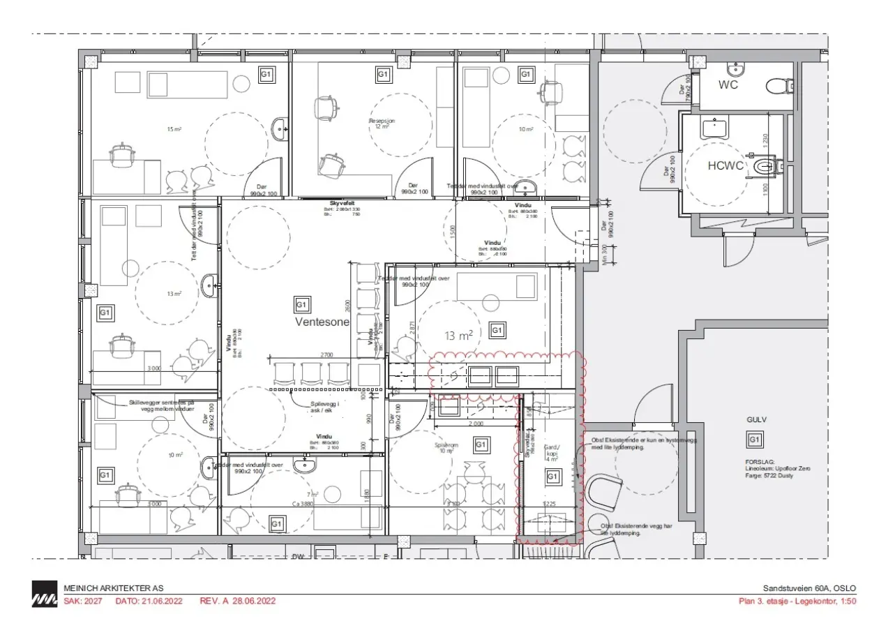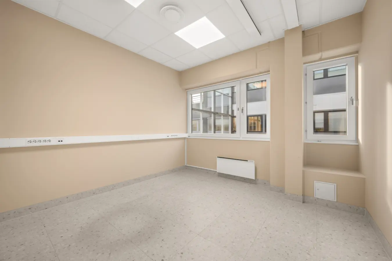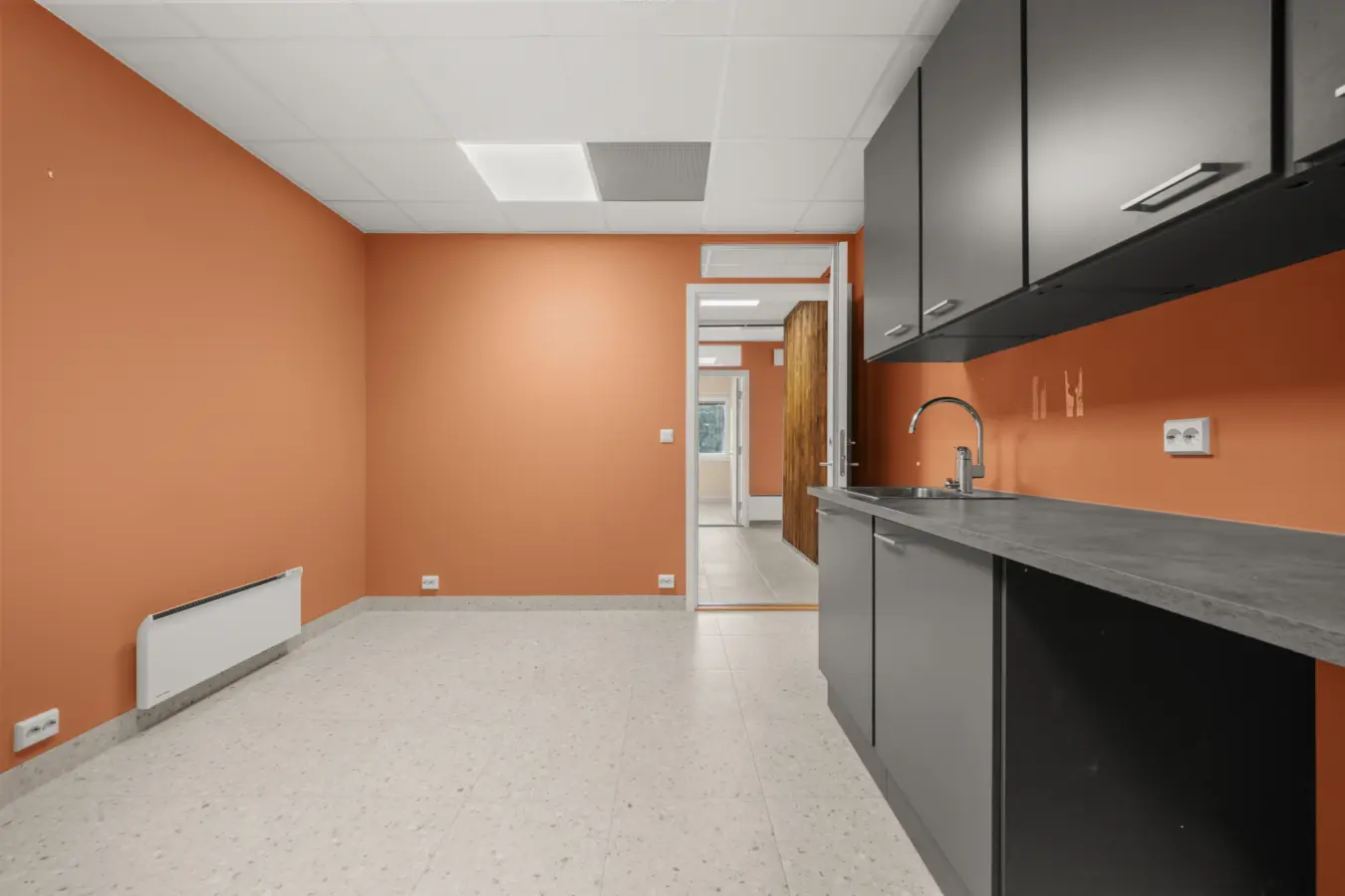 Arealet består av 6 kontorer i varierende størrelser, spiserom og sosial sone. Lokalene har tidligere vært utleied som lege kontor, så kontorene er lydtette og det er vasker på alle kontorene, i tillegg er det bygget rom for lab og venterareal for pasieneter.