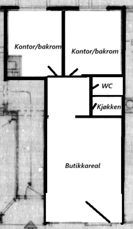 Lokalet har tidligere vært ett åpent butikklokale og det er mulig å gjenopprette opprinnelig planløsning.