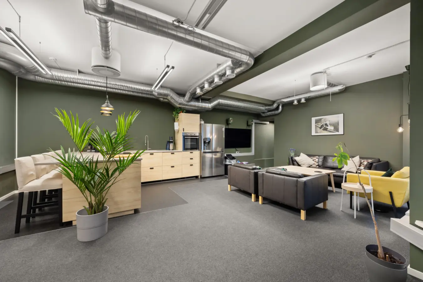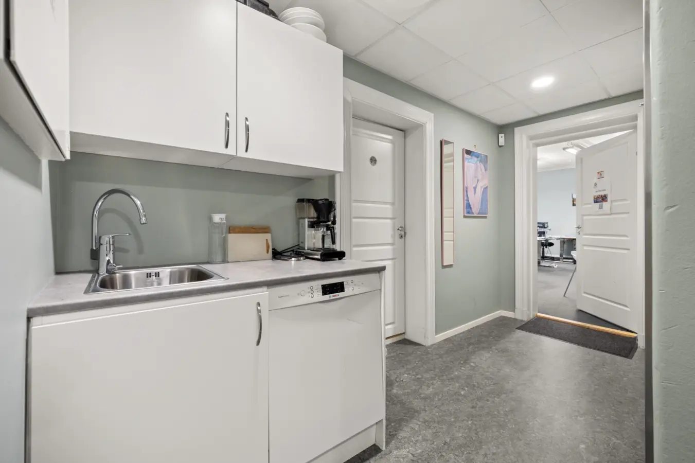 Moderne lokaler på 160 kvm BTA. i 2.etg.: Lokalet består av åpent inngangsparti med nyere kjøkken og sosiale sone, to landskapsareal med plass til 4-6 personer, 1 kontor, arkiv/datarom og toalett.
