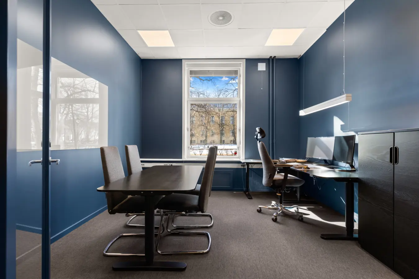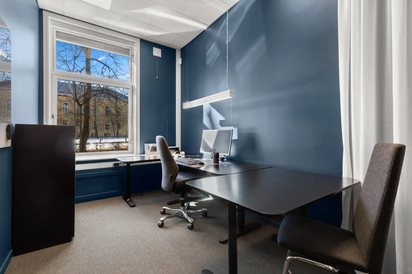 Lokalet er gjennomgående med store vindusflater som gir godt arbeidslys.