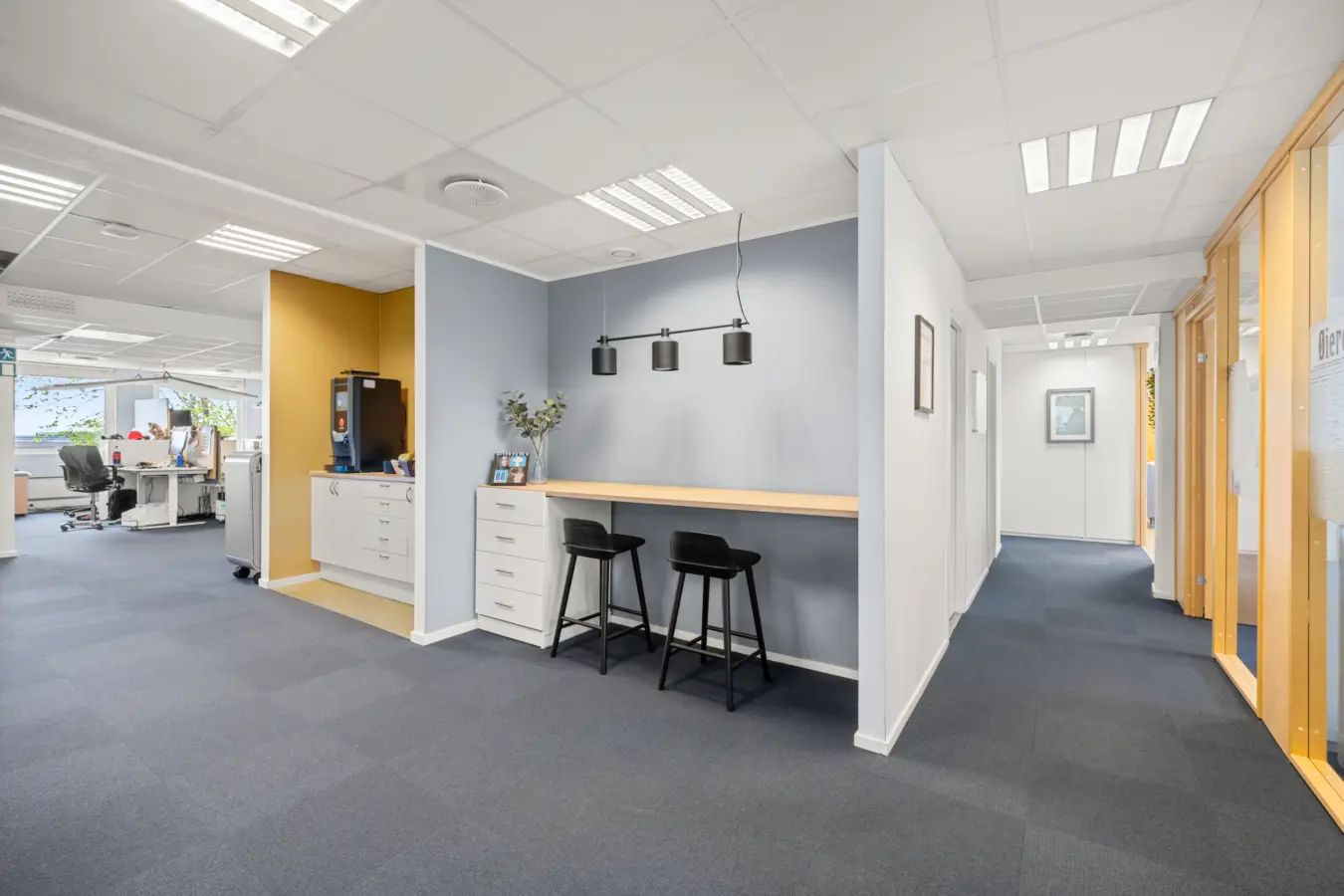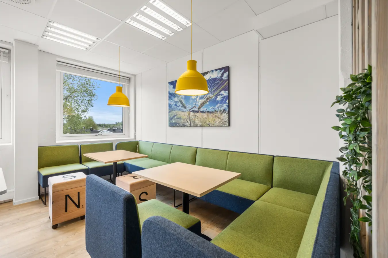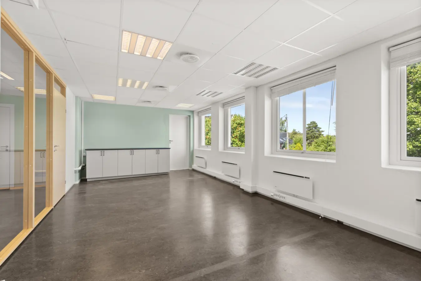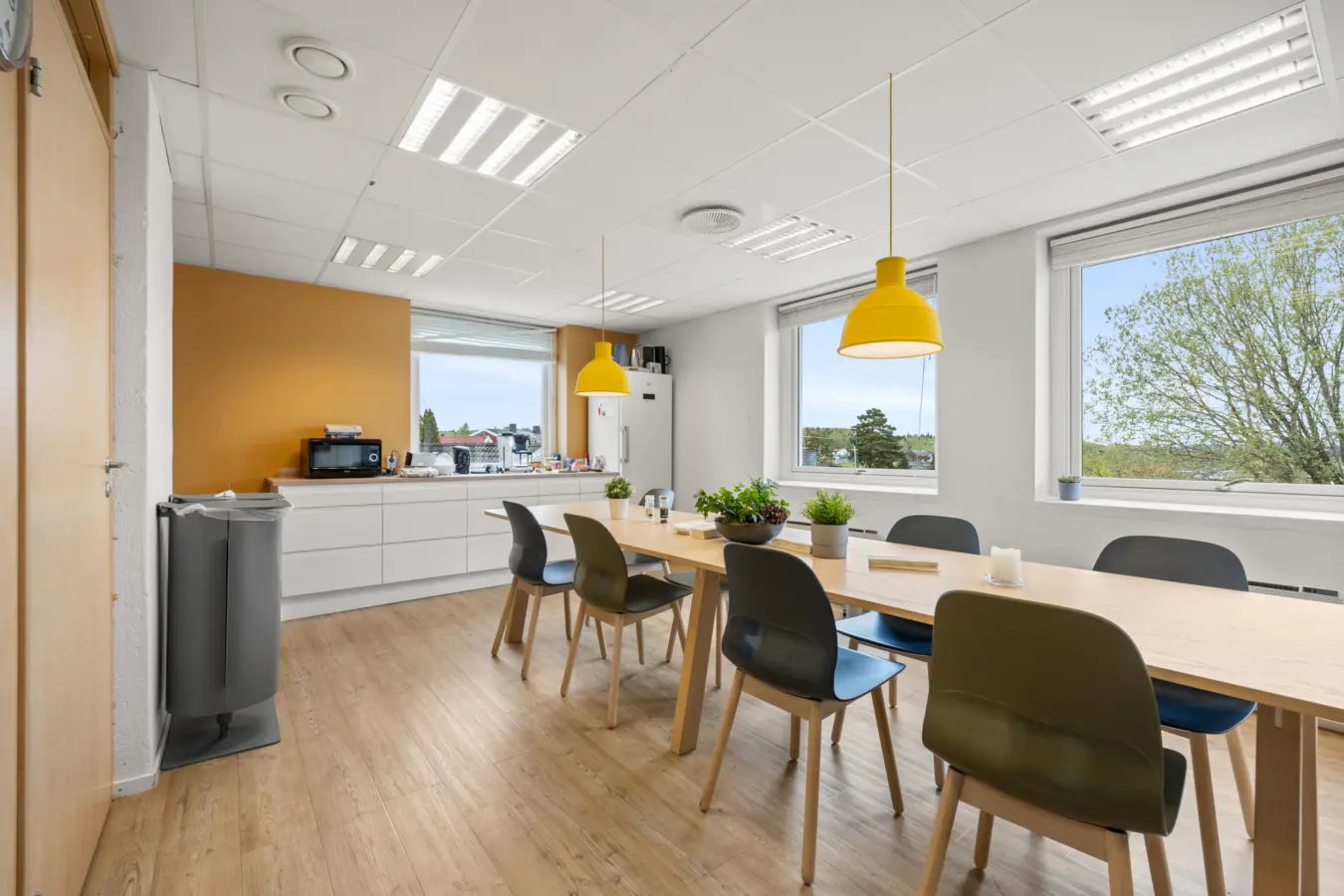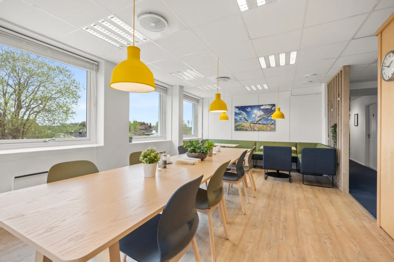 Lokalene er lyse med store vindusflater som gir godt arbeidslys.
