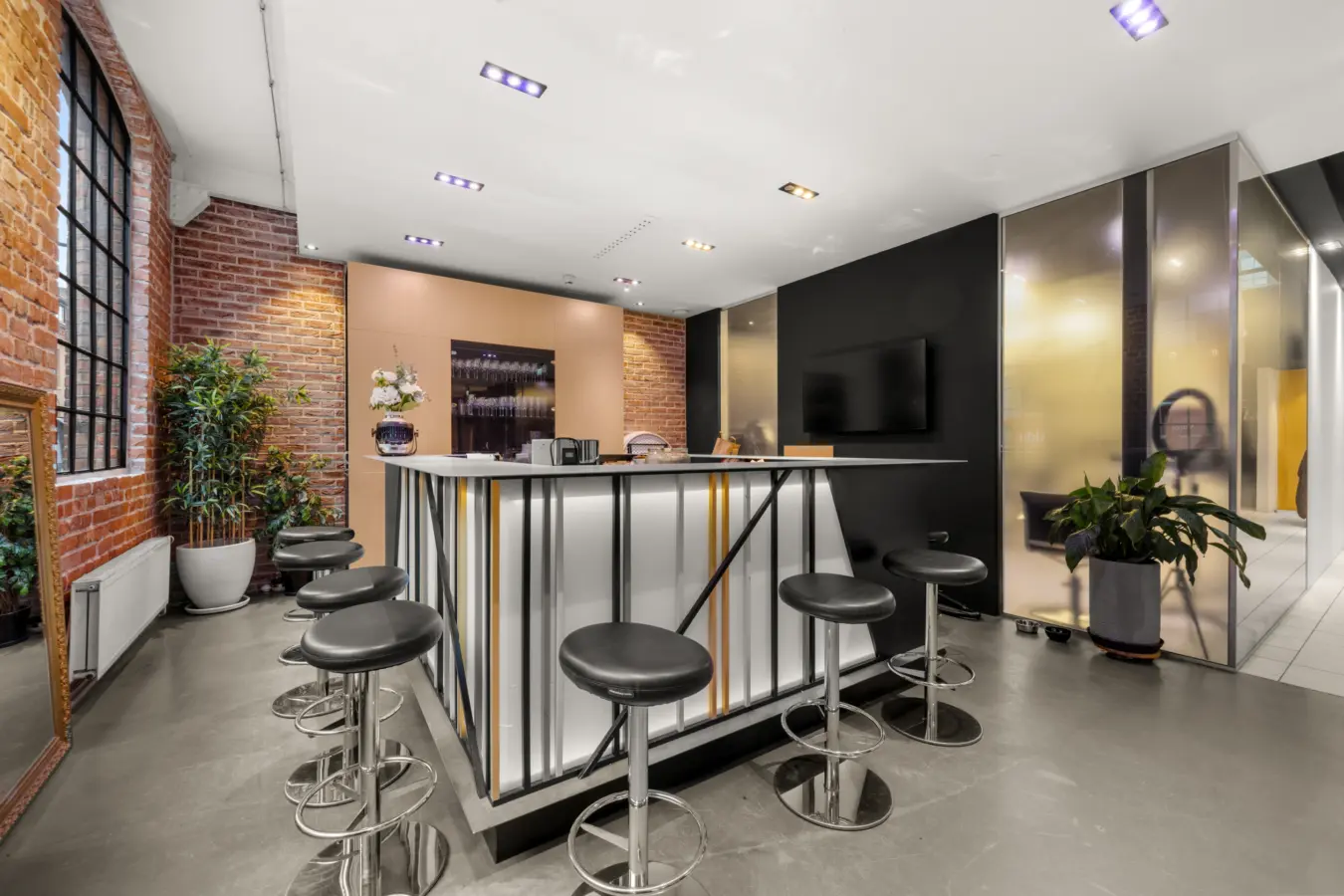 1.etg. 290 kvm BTA. Store åpne arealer med god takhøyde. Lokalene består av respesjonsområde, møterom og åpent areal som i dag er innredet for frisør. Lokalene passer også godt for andre formål som showroom, butikk og publikumsrettet virksomhet, m.m.