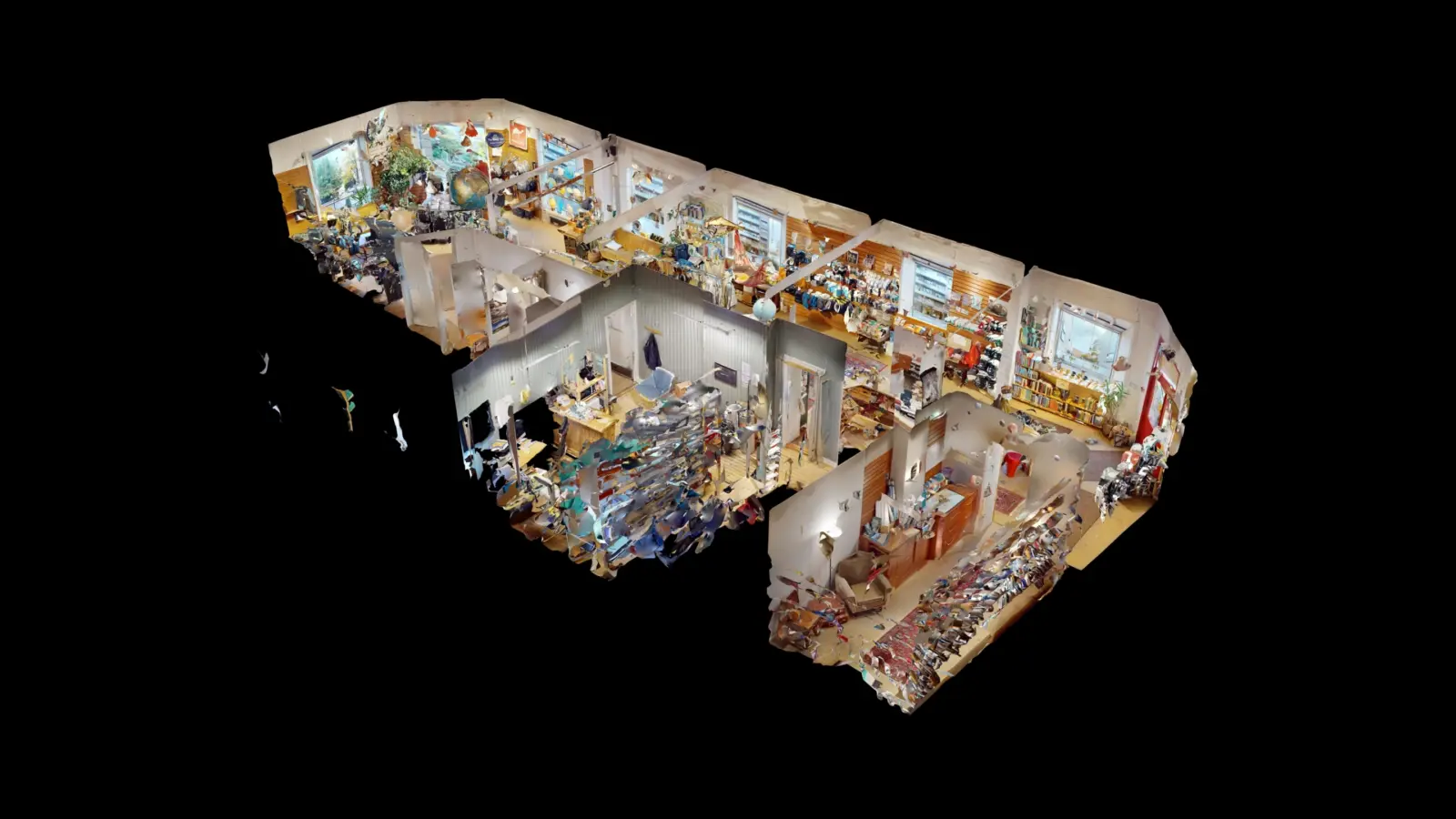 Lokalet inneholder store salgsarealer mot gaten i hele byggets bredde, samt kontor, lager og toaletter mot bakgården. Lokalet har god takhøyde og store vinduer mot gaten. Lokalet er opprinnelig 3. stk. seksjoner så det er mulighet for flere inngangsdører.